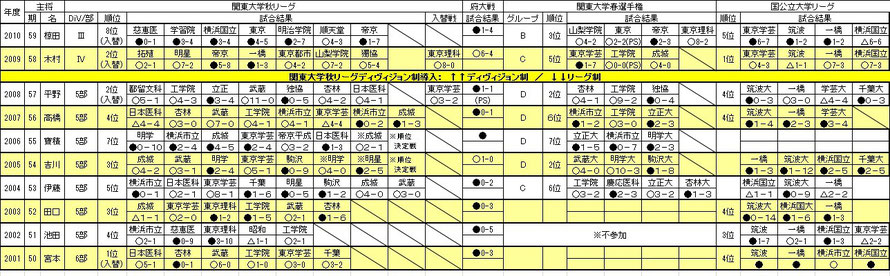 試合結果一覧 部の足跡、部員の方々の成果をより詳しく記録していきたいと考えています。情報をお寄せいただければ幸いです。記憶頼みでも結構です。 ※画像をクリックすると拡大します 2021- 2011-2020 2001-2010 1991-2000 1981-1990 1971-1980 1961-1970 1952-1960
